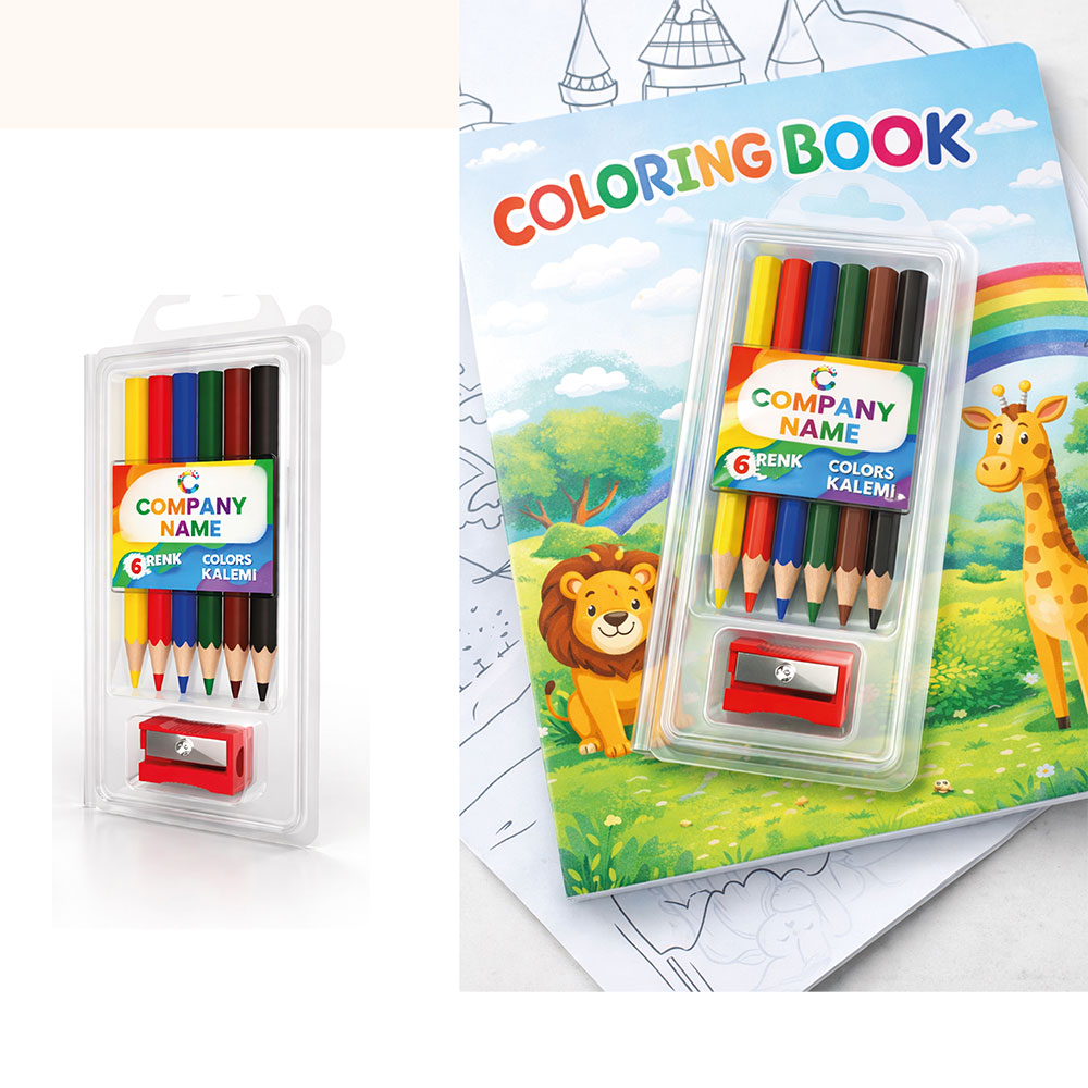 Setin içinde 6 adet kuru boya ve 1 adet kalemtıraş bulunmaktadır. Doğa dostu ve ağaç içermez.